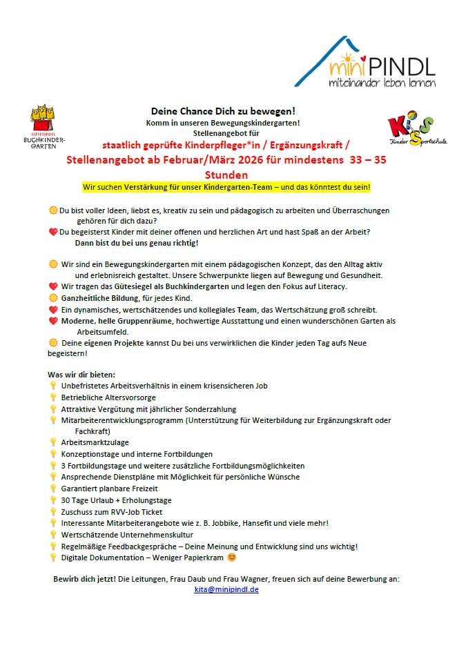 die Persönlichkeitsförderung individuell. Wir freuen uns auf Ihre aussagekräftige Online-Bewerbung. Montag-Freitag 08:00 - ca. 15:15 Uhr Montag-Freitag im Rahmen unserer ÖffnungszeitenJobs am Privat-Gymnasium PINDL